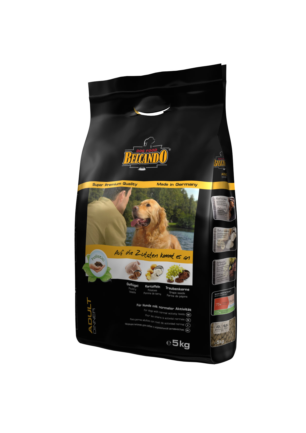 Η προσεκτική επιλογή των πρώτων υλών,η αφθονία σε τρυφερά πουλερικά,οι καρποί Chia και οι πυρήνες σταφυλιών ψυχρής πίεσης,δίνουν στην Belcando Adult Dinner τον ιδανικό συνδυασμό θρεπτικών συστατικών για ενήλικους σκύλους…Η ιδανική περιεκτικότητα πρωτεινών και λίπους είναι προσαρμοσμένη στις ανάγκες των σκύλων με φυσιολογικά επίπεδα δραστηριότητας…Εάν δίνεται τη σωστή ποσότητα,το σωματικό βάρος του σκύλου θα παραμείνει σταθερό και το επίπεδο κορεσμού θα είναι κατάλληλο…Το σχήμα των κροκετών ενθαρρύνουν τον σκύλο να τις μασάει…