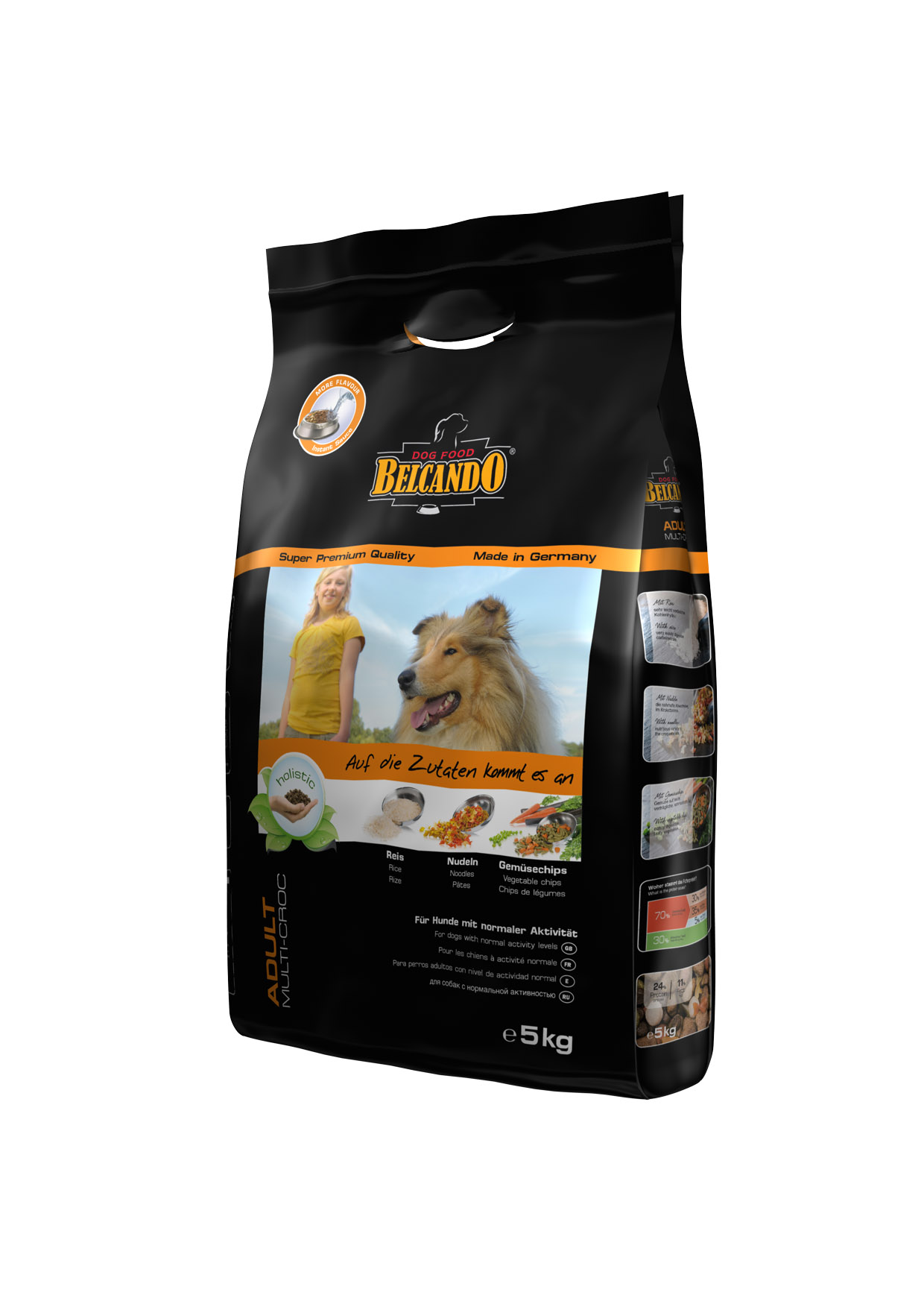 Πολύτιμες πρώτες ύλες,μοσχάρι,πουλερικά και ρύζι ως εξαιρετικά εύπεπτο υδατάνθρακα κάνουν την Belcando Adult Multi-Croc ιδανικά συμβατή…Νόστιμος συνδυασμός διαφορετικών κροκετών,λαχανικών και ζυμαρικών για ενήλικους σκύλους που αγαπούν την ποικιλία…