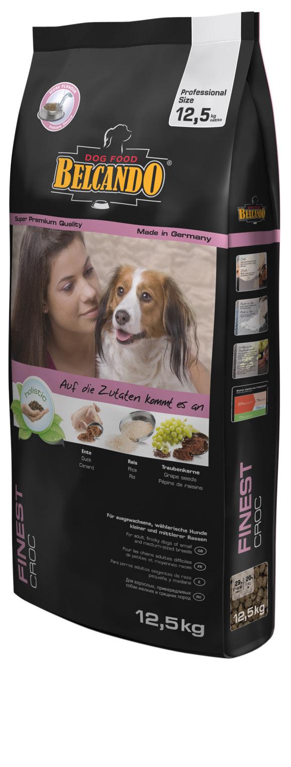 Τα ειδικά επιλεγμένα συστατικά,η εκλεκτή πάπια και το νόστιμο συκώτι,κάνουν την Belcando Finest Croc πρώτη επιλογή για τους εκλεκτικούς σκύλους…Εύπεπτο ρύζι και πολύτιμοι πυρήνες σταφυλιών ψυχρής πίεσης διασφαλίζουν ένα νόστιμο γεύμα και προσφέρουν υγιεινή ευχαρίστηση από κάθε άποψη…Το υψηλό ποσοστό πρωτεϊνών και λίπους προωθεί την πέψη και μειώνει την ποσότητα των περιττωμάτων…
